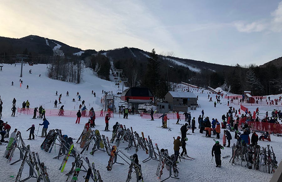 How to manage crowds such as this one bunched at the bottom of Sunday River at the end of a busy day will likely be a huge consideration for Boyne in the run-up to the 2020-21 ski season.