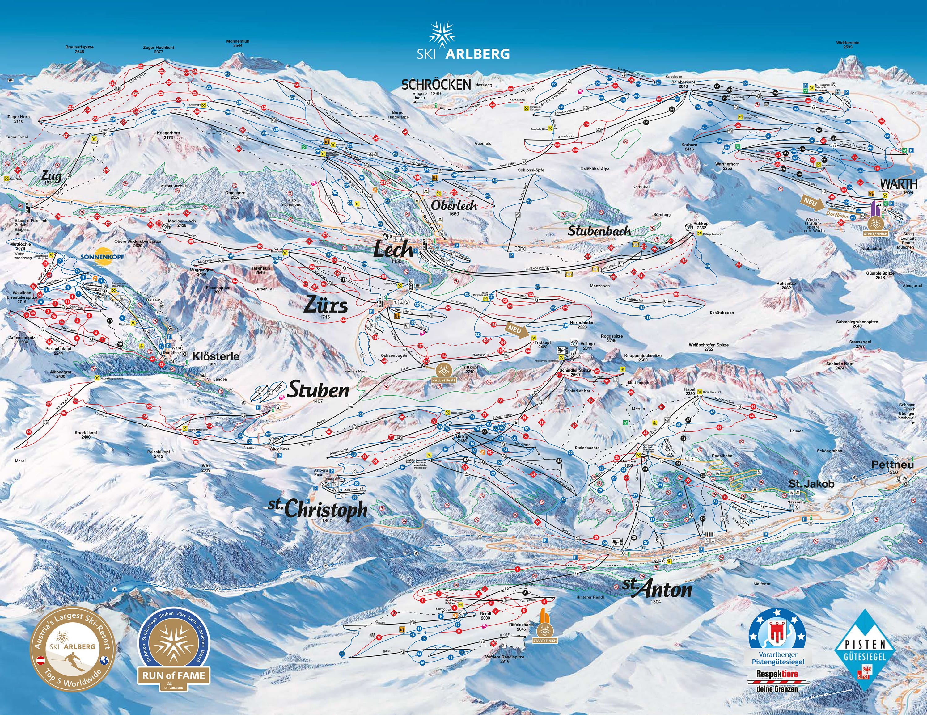 Click into the world of international ski area statistics, and things get weird fast. It’s like they’re written by a Martian trying to reformulate concepts across cultures: snowguns become “snow cannons”; runs become “courses”; double chairs are “pair lifts.” Entire categories of statistics are often absent: Europe and Japan care more about average snow depth than average annual snowfall, a stat that’s nearly impossible to find outside of the English-speaking world. Euros tend to quantify ski area size by kilometers of trails, rather than total skiable acreage, a habit that’s a bit odd considering the general lack of trees at the continent’s ski centers. It can also be difficult, in Europe, to determine what a ski area even is. Arlberg, Austria, for example, is listed as a destination on the Epic Pass. But this is not just one super big ski area. It’s five super big ski areas combined into a single destination. Examining the trailmap, it’s impossible to see where one ends and another begins.