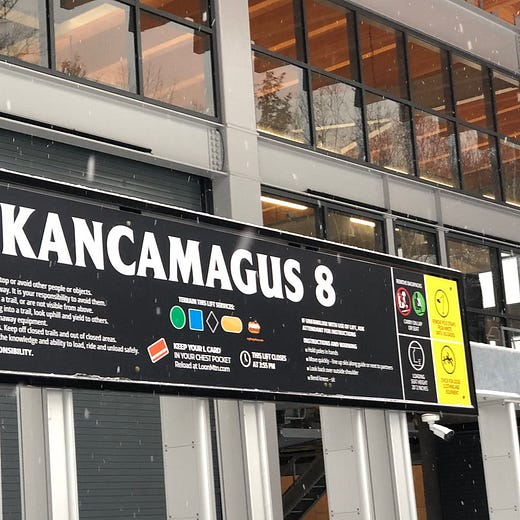 The Kanc 8 sits adjacent to the Kissin’ Cousin lift, a 1986 CTEC double, like an iPhone 13 beside a rotary phone. The difference is that stark. Gliding up the mountain, it looks otherworldly and surreal, immensely smooth and powerful, the carriers rising over the incline like alien ships in formation. This thing is glorious, an attraction all its own. The skiing is almost beside the point – it services a mellow pod of mostly blue runs. There will be no foot traffic, at least in wintertime – the carpet would make that impossible – but Kanc 8 is worthwhile even as a thing to simply stare at.