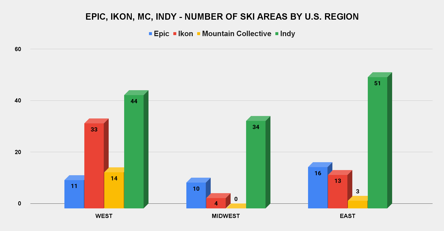 Again, even without next week’s mysterious dozens, Indy offers skiers access to more Alpine ski areas (182) than Epic (71) and Ikon (76) combined (147). In the U.S., those numbers are: 128 Indy, 37 Epic, 50 Ikon. And no not all ski areas are created equal. And yes Colorad-Bro I’m aware of Summit County. But I’ve covered all this before, and for skiers who don’t live in Colorado, the Wasatch, or Tahoe, Indy is a pretty incredible full-season ski option (or add-on to Epkon or a local unlimited pass):