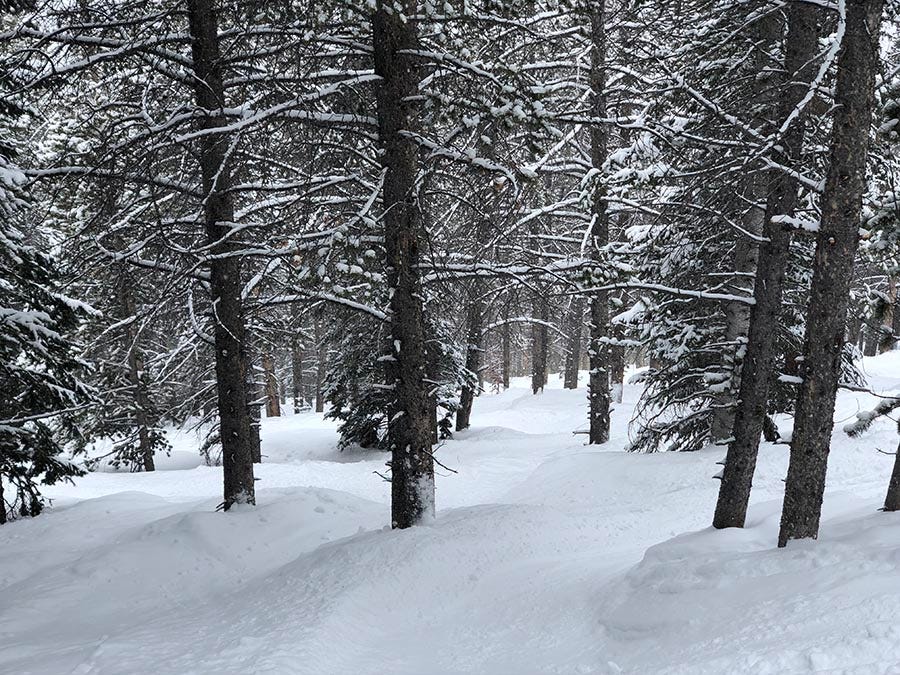 But the Outback was closed on a wind hold. A wild storm was blowing through and snow settled in long sheets over the incline. As at Beaver Creek the previous day the fresh snow and plunging temperatures had fossilized vast bump fields, but unlike the previous day I was exhausted and had trouble finding a rhythm in the wind-whipped thick powder adhering to the concrete moguls below. On the next run I ducked into the Cat South Glades and here I found some kind of powdery Utopia, like I was playing Super Mario Brothers and ducked down an unassuming tube and found a room blitzed with thousands of free coins and extra lives. This is not a secret run but it had been completely ignored by the hordes dumping off the summit and I had this snowy wood to myself.