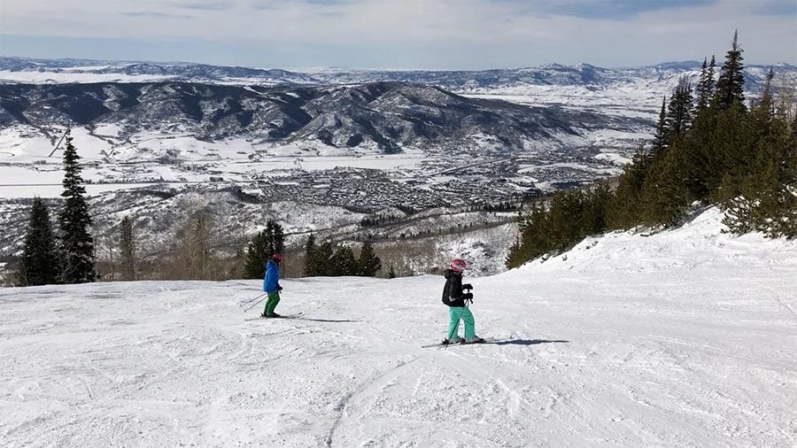 Steamboat too I’ve visited and I have exhilarating memories of days spent in the deep and endless glades and angling through the towering walls of bumps streaming off of it seemed every lift. In those two previous visits I don’t know if I ever skied a groomer top to bottom or for any reason other than to traverse to someplace more interesting, but here I skied along with my daughter down the sunny groomers that stretched over the horizon. I had not been here since two months before she was born, when she was a figment and an impossible thing, and here she was swooping across the hill with the flat-bottomed neatly squared valley pancaked far below. On the soft snow she gained confidence and skied blacks from Storm to Sunshine Peaks.
