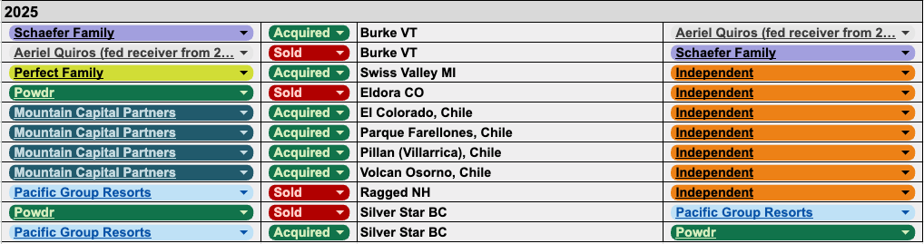 This has been a busy year for multi-mountain ski area operator sales transactions, even as 2025 sets up to be the first year since 2020 – and the first non-Covid year since 2011 – during which neither Vail nor Alterra purchased a resort.