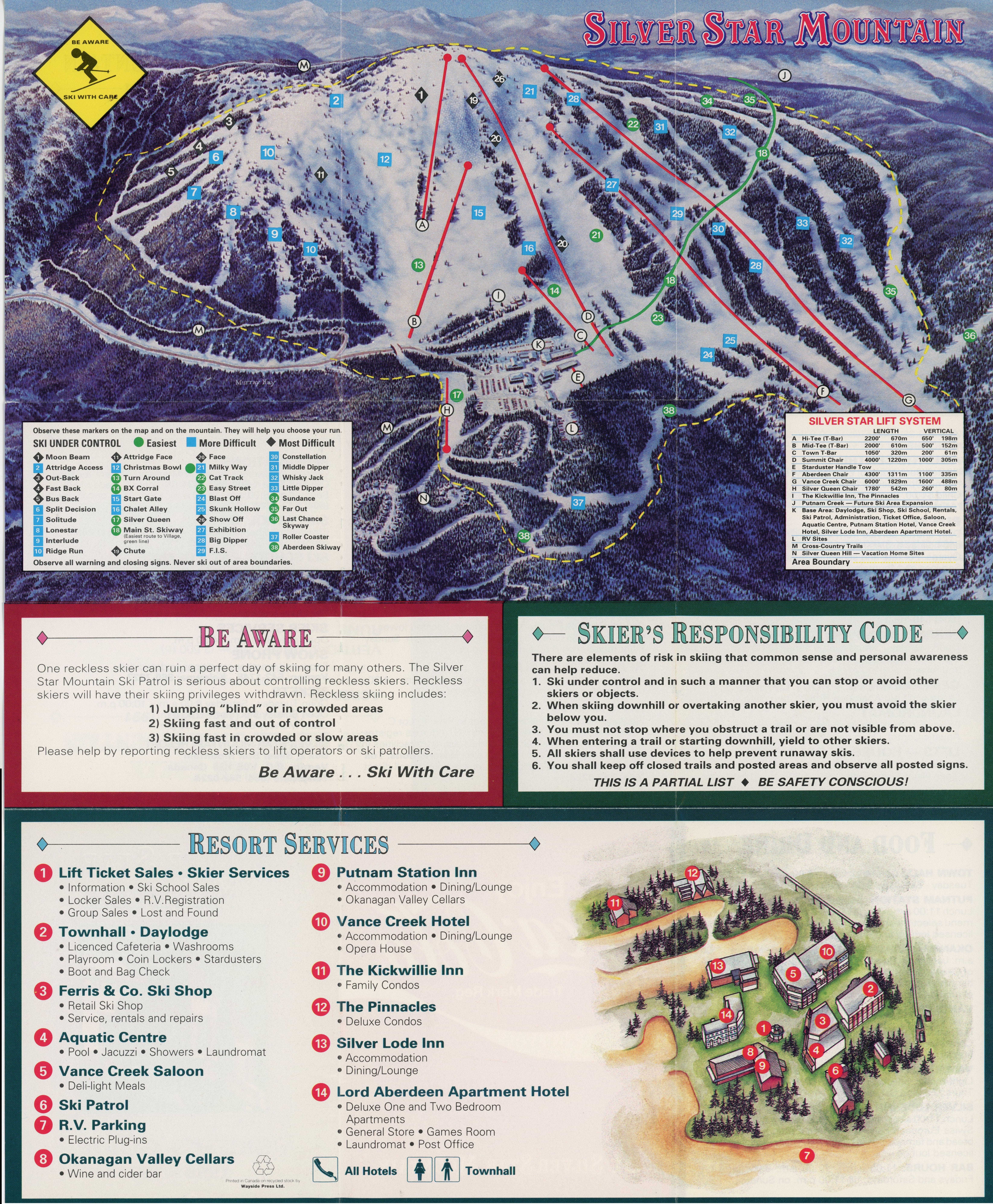 These mountains, I mean. Canada, I mean. It’s like Pacific Rim up there, Man. Only instead of 300-foot-tall robot monsters erupting repeatedly from the ocean depths, B.C. has 3,000-acre ski areas popping out of the hills like dandelions. I keep trying to comprehensively cover Canada only to retreat when I trip over yet another Everest-sized ski area that five years ago spun a single T-bar powered by Uncle Buford’s Ford F-150. I mean look at Silver Star in 1991: