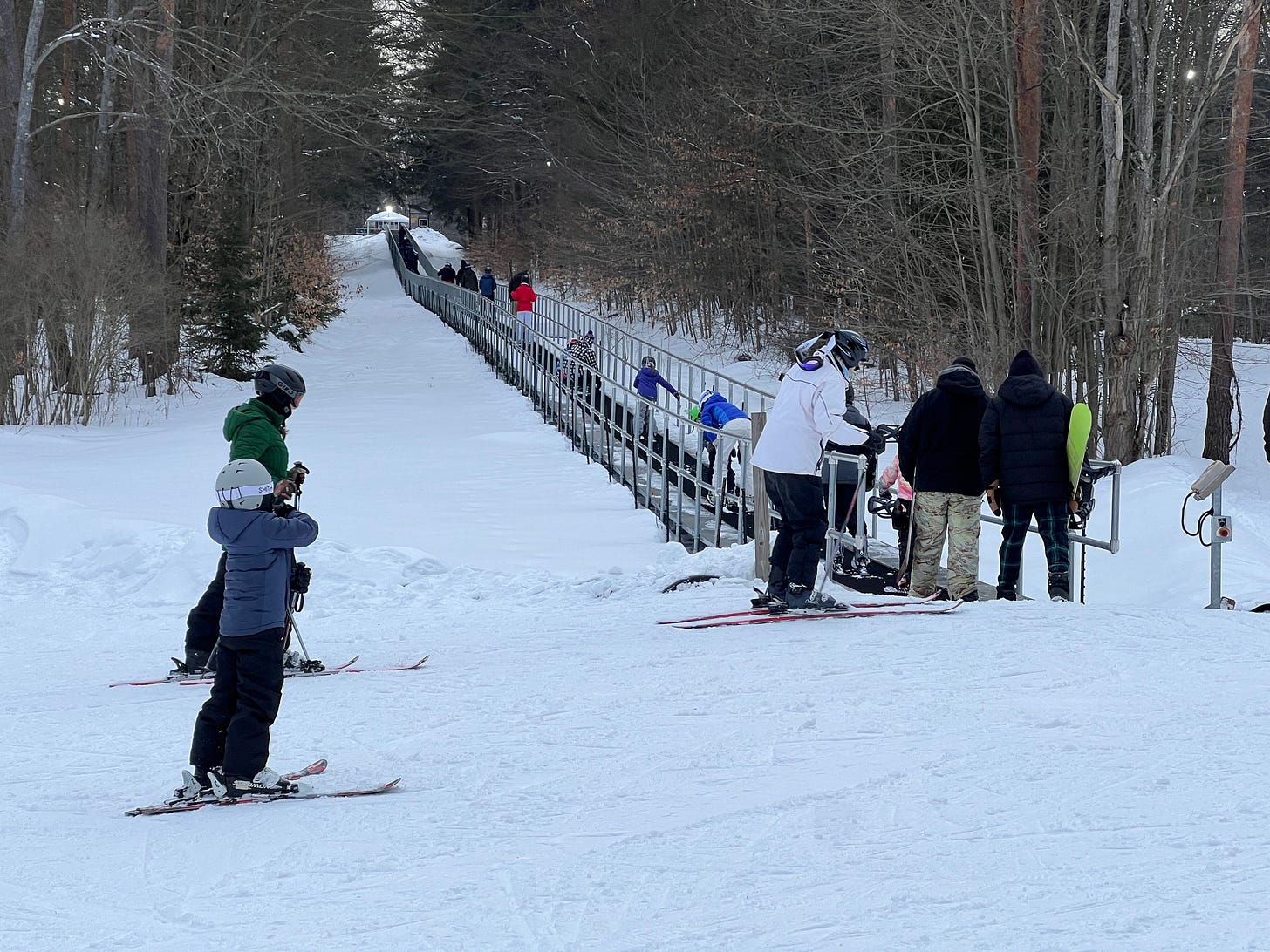 We’ll get to Kissing Bridge in a bit. First, some New York Skiing 101. The combined 5,138 skiable acres of New York State’s 50 or 51 active ski areas could comfortably fit within the boundaries of 5,317-acre Vail Mountain. Only imagine Vail was strung with 244 ski lifts (it has 32). Madcap. And that’s New York skiing: 34 ski areas with chairlifts, one of which is private and three of which are open to the public only on weekdays; 17 with just surface lifts, four of them private, but one of these (Cazenovia), accessible with an Indy Pass. Nine of these surface-lift bumps spin just one lift. For six of them, this is a ropetow (Val Bialis also has a non-operational chairlift that owner City of Utica intends to reactivate). For two others, the sole lift is a T-bar. And the last surface lift-only ski area is Emery Park, and Emery Park is the only ski area in New York – and one of just seven in the United States – that runs one carpet lift and nothing else.