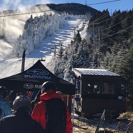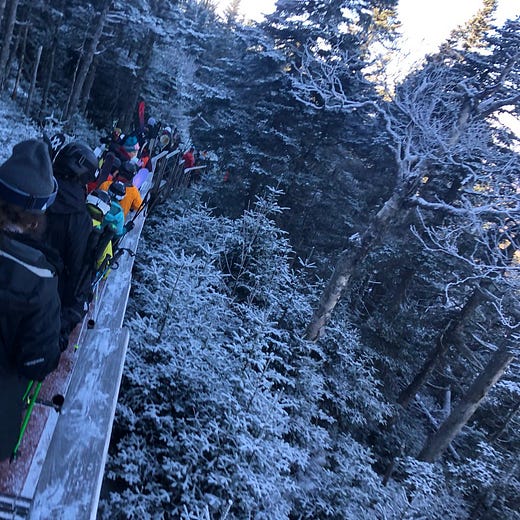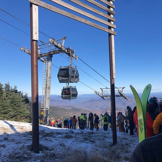 This landscape is evolving. Large expansions are in various states of permitting and clearing at Ragged*, Waterville Valley, and Mount Sunapee. Les Otten wants to build the largest ski area in the Northeast at the abandoned Balsams ski area in the state’s far north. I hope they all happen. The state’s current ski footprint is too constrained to manage the hordes trampling north out of Boston on weekends and holidays. Add any measurable amount of natural snow, and it’s gridlock at the lifts. It’s time to go big.