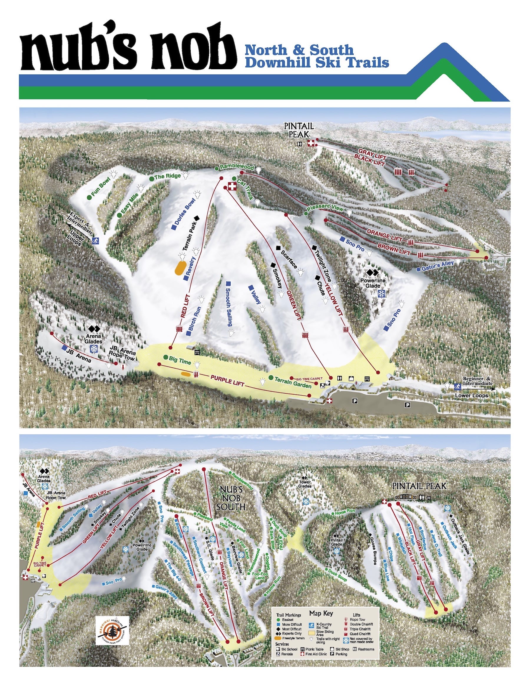 Lift count: 10 (3 fixed-grip quads, 4 triples, 1 double, 1 carpet, 1 ropetow - view Lift Blog’s inventory of Nub’s Nob’s lift fleet)