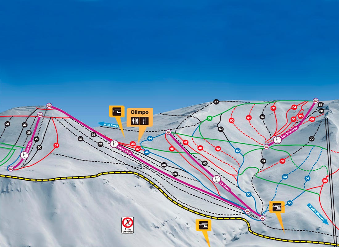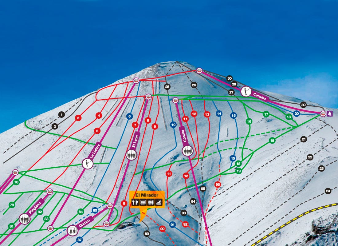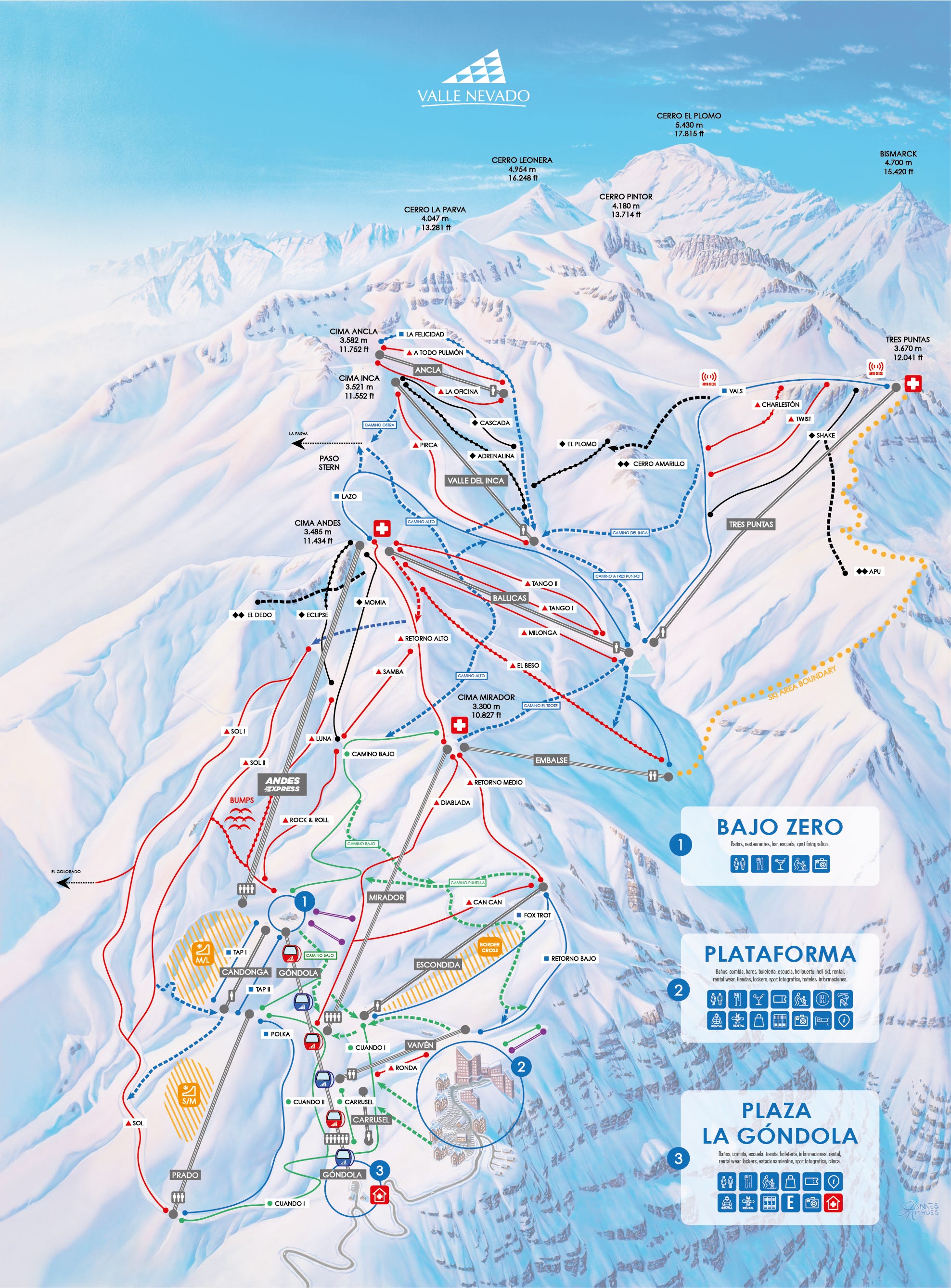 Valle Nevado, however, must be considered in this context of its interconnected neighbors: 1,100-acre El Colorado and 988-acre La Parva. They cannot be skied on one lift ticket, but maintained and signed trails run between both resorts and Valle Nevado. That gives skiers 4,288 acres to play in – more than Mammoth (3,500 acres), Northstar (3,170 acres), or Winter Pak (3,081 acres), and roughly the size of Mt. Bachelor. If you’re really balling, the heli runs – some up to 7,000 vertical feet – are right there too.