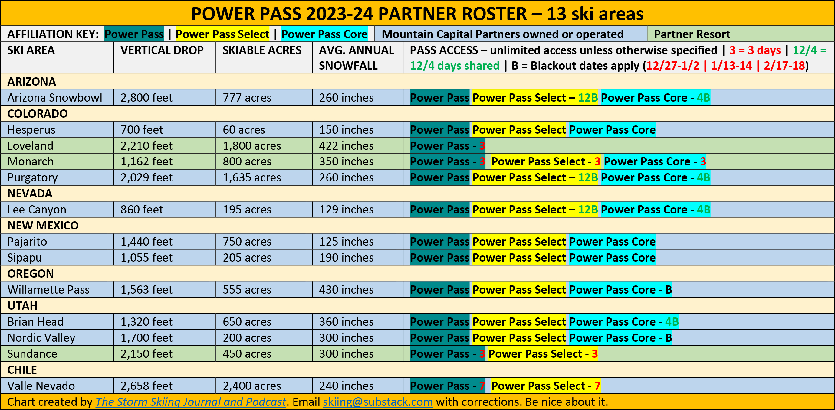 Sadly, the Power Pass site has no mention of days at Copper Mountain, which last season was included on the top-tier pass.