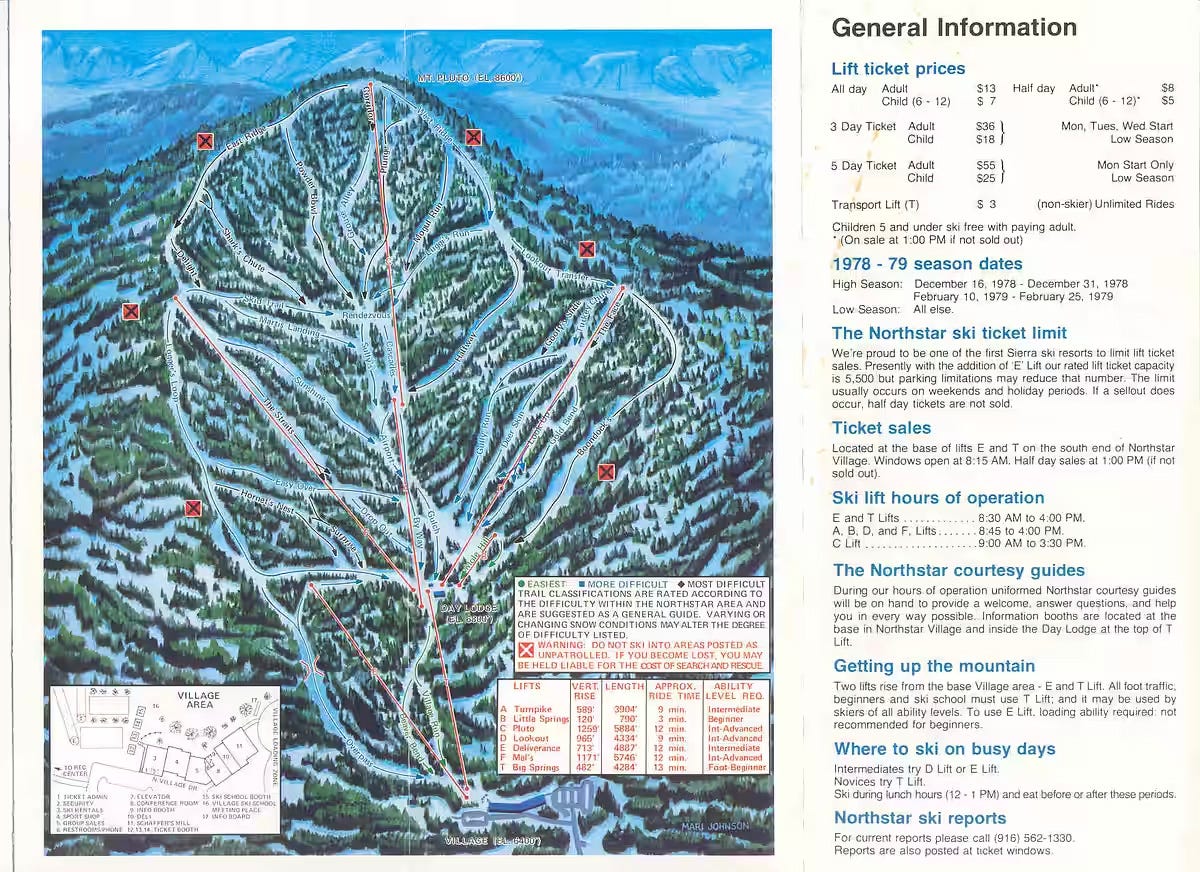 I couldn’t find any relics from Northstar’s 1972 “Everything in the middle of nowhere” ad campaign. I did, however, find this 1978 trailmap noting that all-day adult lift tickets cost $13: