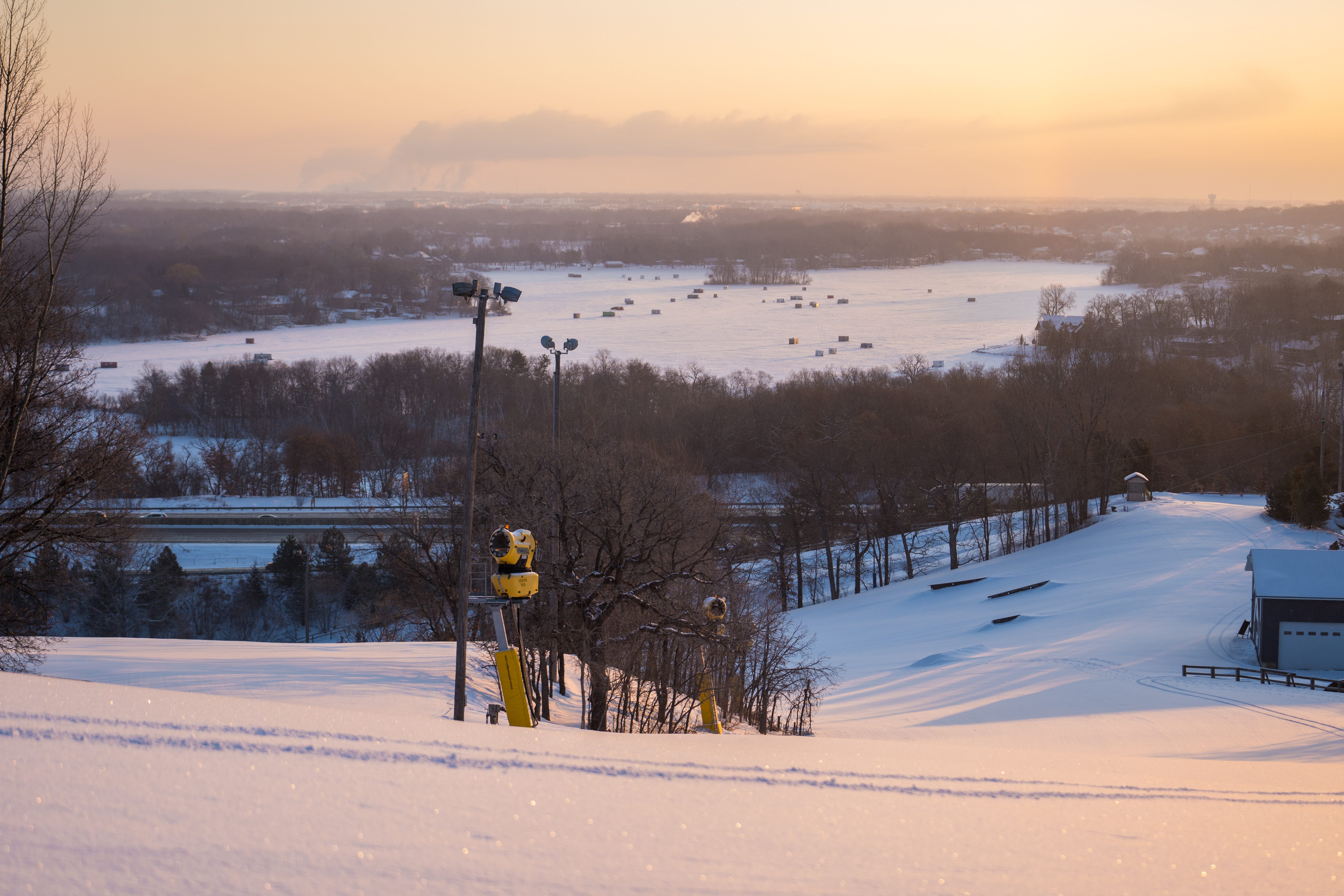 Buck, rote, repetitive, and tiny, is exactly perfect for the market it serves: beginners, racers, freestylers, and their families. All the on-hill hubbub can make it hard to hang out, but find a moment to linger at the summit, to gaze at the frozen lake below, at the placid Midwest rolling off into forever. It’s not the greatest ski area you’ll ever find, but it is a singular, spectacular place in a very specific way. If you can find a parking spot.