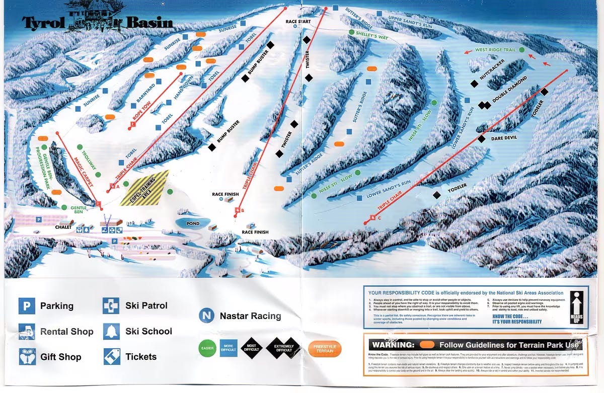 Lift count: 7 (3 triples, 2 ropetows, 2 carpets – view Lift Blog’s inventory of Tyrol Basin’s lift fleet)