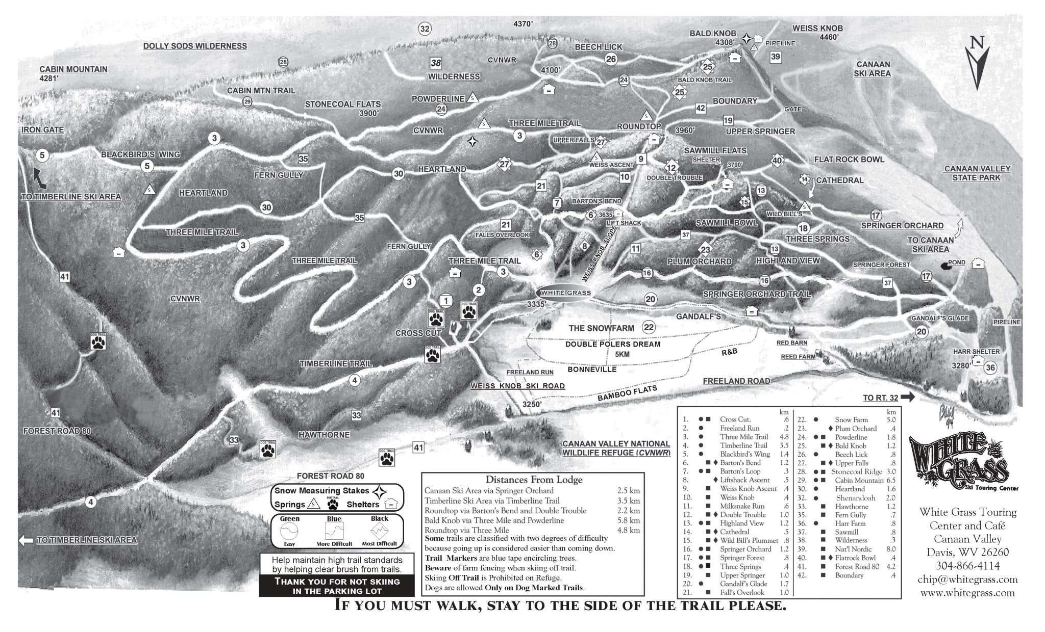 White Grass sits directly between two lift-served ski areas: state-owned Canaan Valley and newly renovated Timberline. Here’s an overview of each: