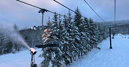 I said that Windham was automating its first snowmaking trail this year. That is incorrect, as Seamans points out in our conversation. Windham is installing its first automated snowmaking on the east side of the mountain this year, meaning that 40 percent of the mountain’s snowmaking system will now be automated.