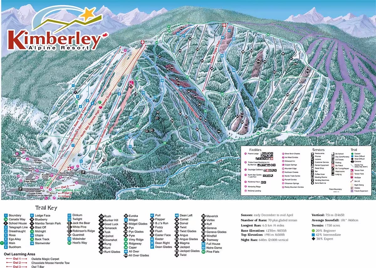Closest neighboring ski areas: Fairmont Hot Springs (1:15), Kimberley (1:27), Panorama (1:45) – travel times vary considerably given time of year and weather conditions