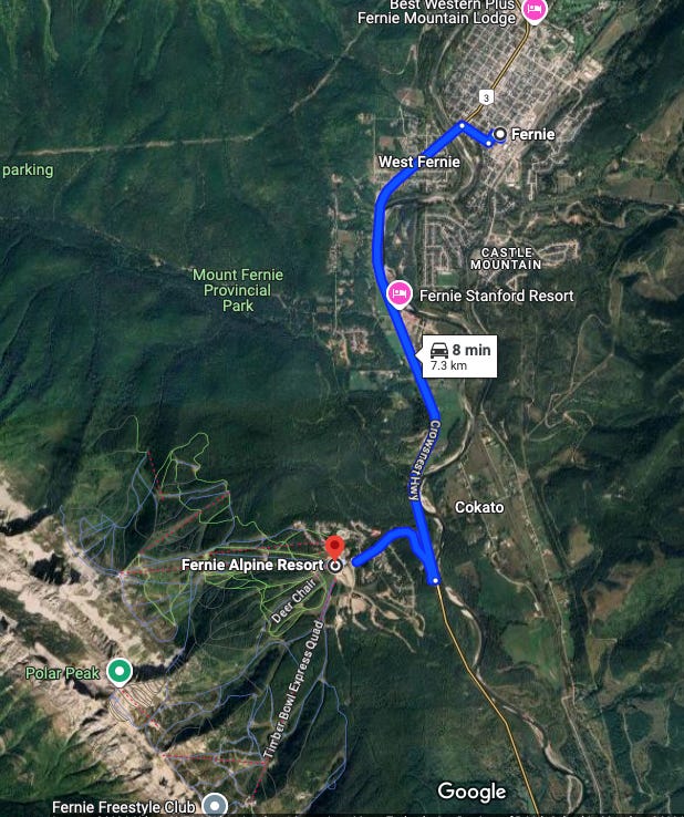 Shoosh Emoji Bro distills much of what is juvenile and counterproductive about contemporary ski culture. But Shoosh Emoji Bro is a buffoon. Because if skiing is ever going to grow, it’s going to be at least in part because Philadelphia Fred and Tampa Bay Tim realize there are places to ski other than Breckenridge. And one of those places, huge and often overlooked, if not exactly unknown, is Fernie, the southeast anchor of the Powder Highway, a glorious set of bowls perched at the top of the Canadian Rockies, a ski area above an actual ski town. So get the hell out of the way, Shoosh Emoji Bro, because I’m setting off the fireworks, and they’re going to be visible all the way to Corpus Christi.