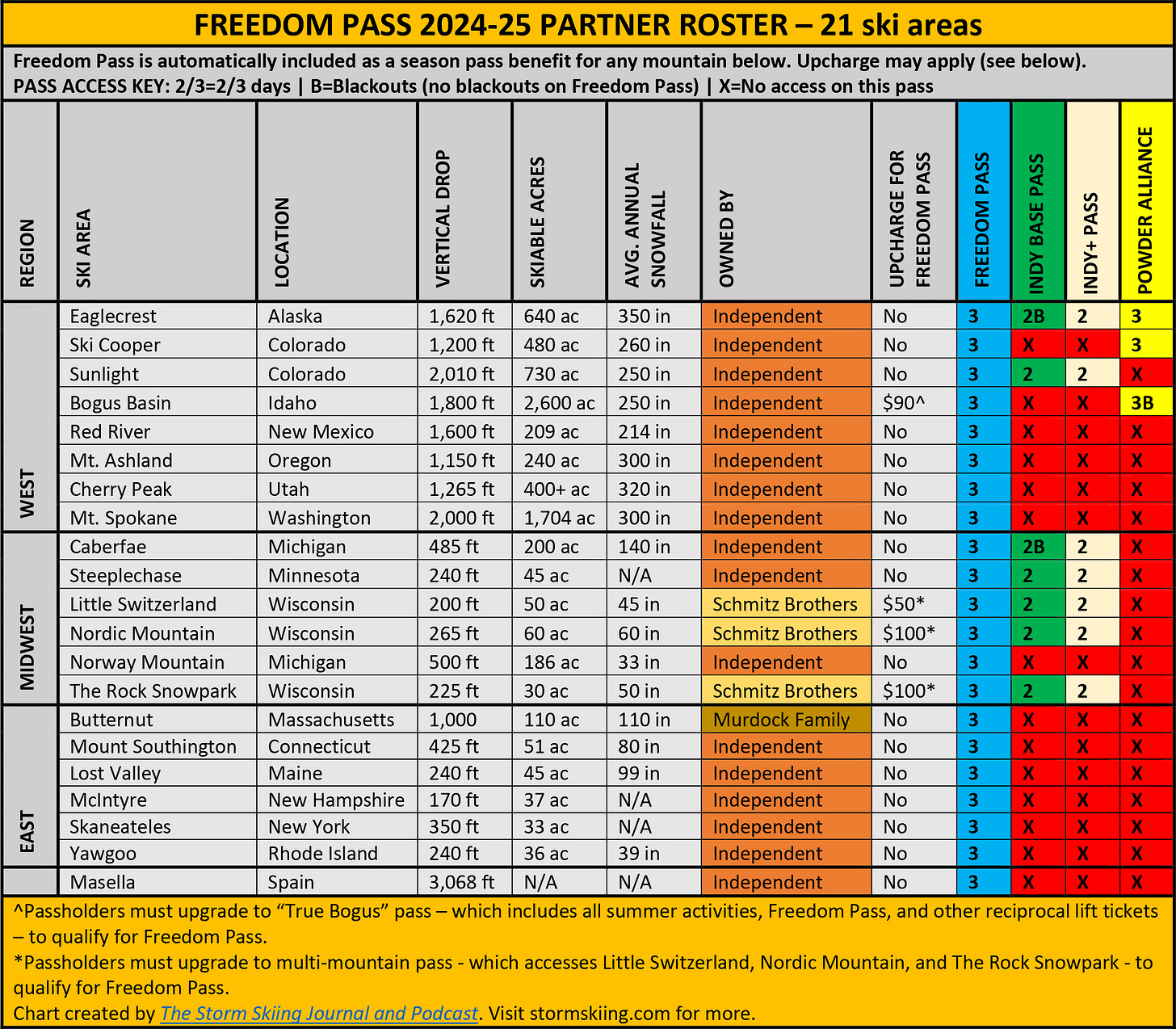 Pass affiliations: Freedom Pass – 3 days each at these ski areas: