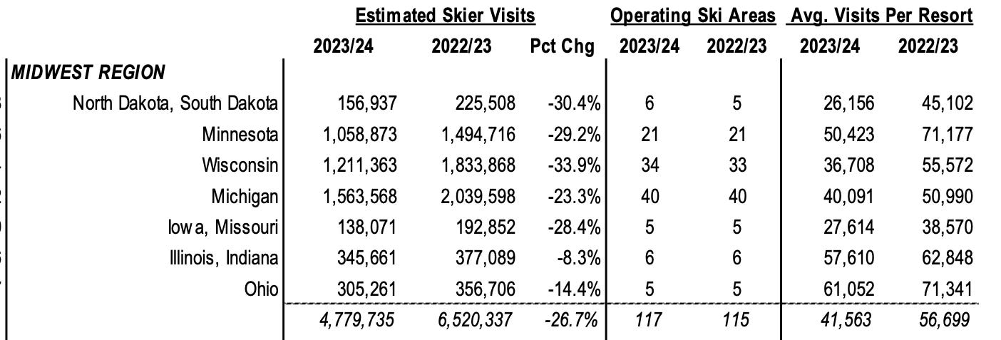 Skier visits were down in every region of the United States last winter, but they all but collapsed in the Midwest, with a 26.7 percent plunge, according to the annual Kottke Demographic Report. Michigan alone was down nearly a half million skier visits. Check out these numbers: