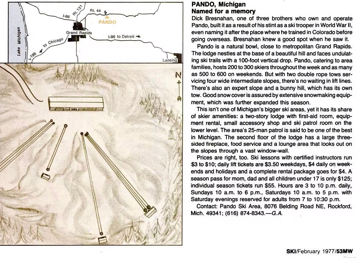 Pando didn’t leave much behind. The only trailmap I can find is part of this Ski write-up from February 1977: