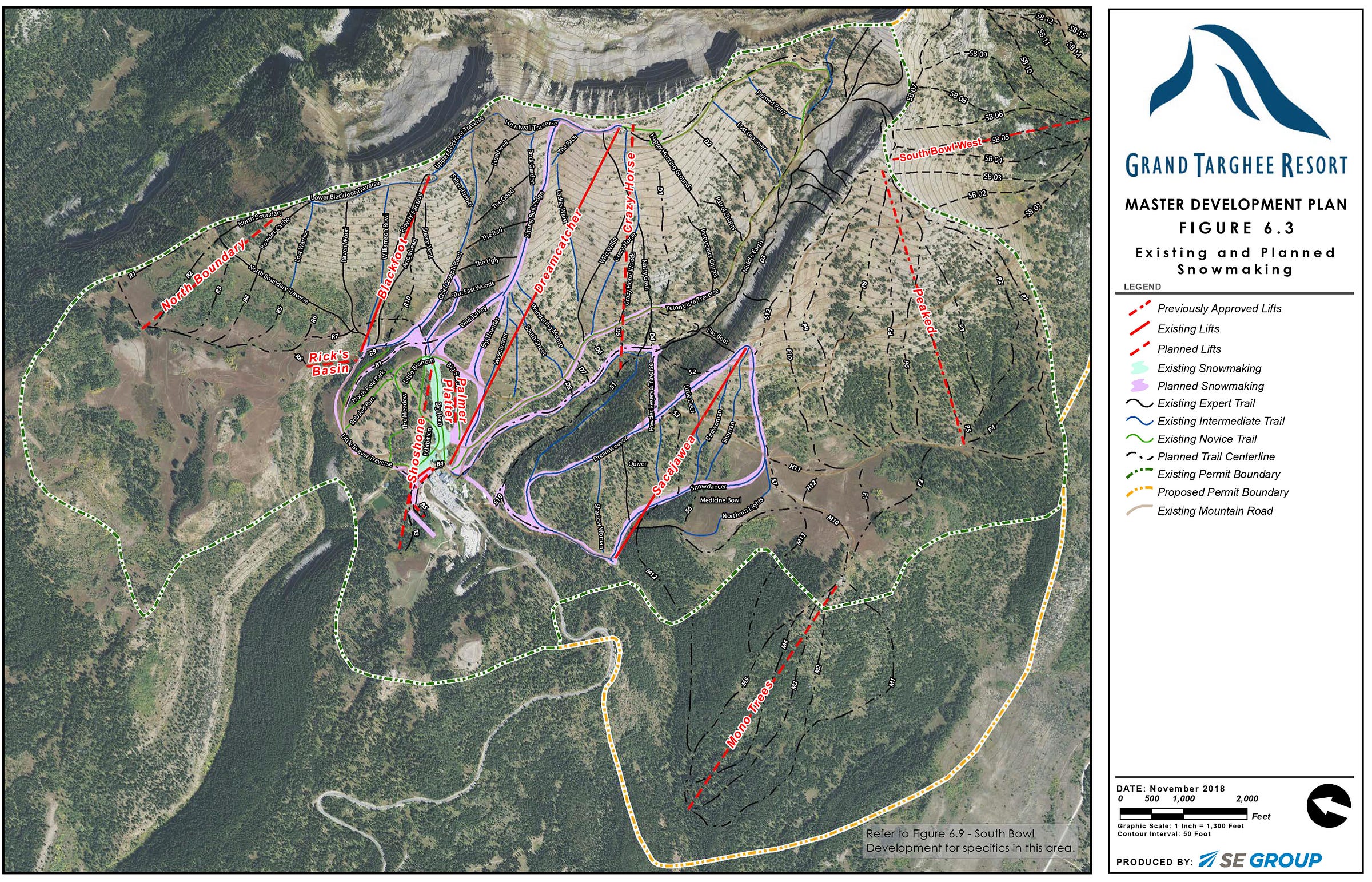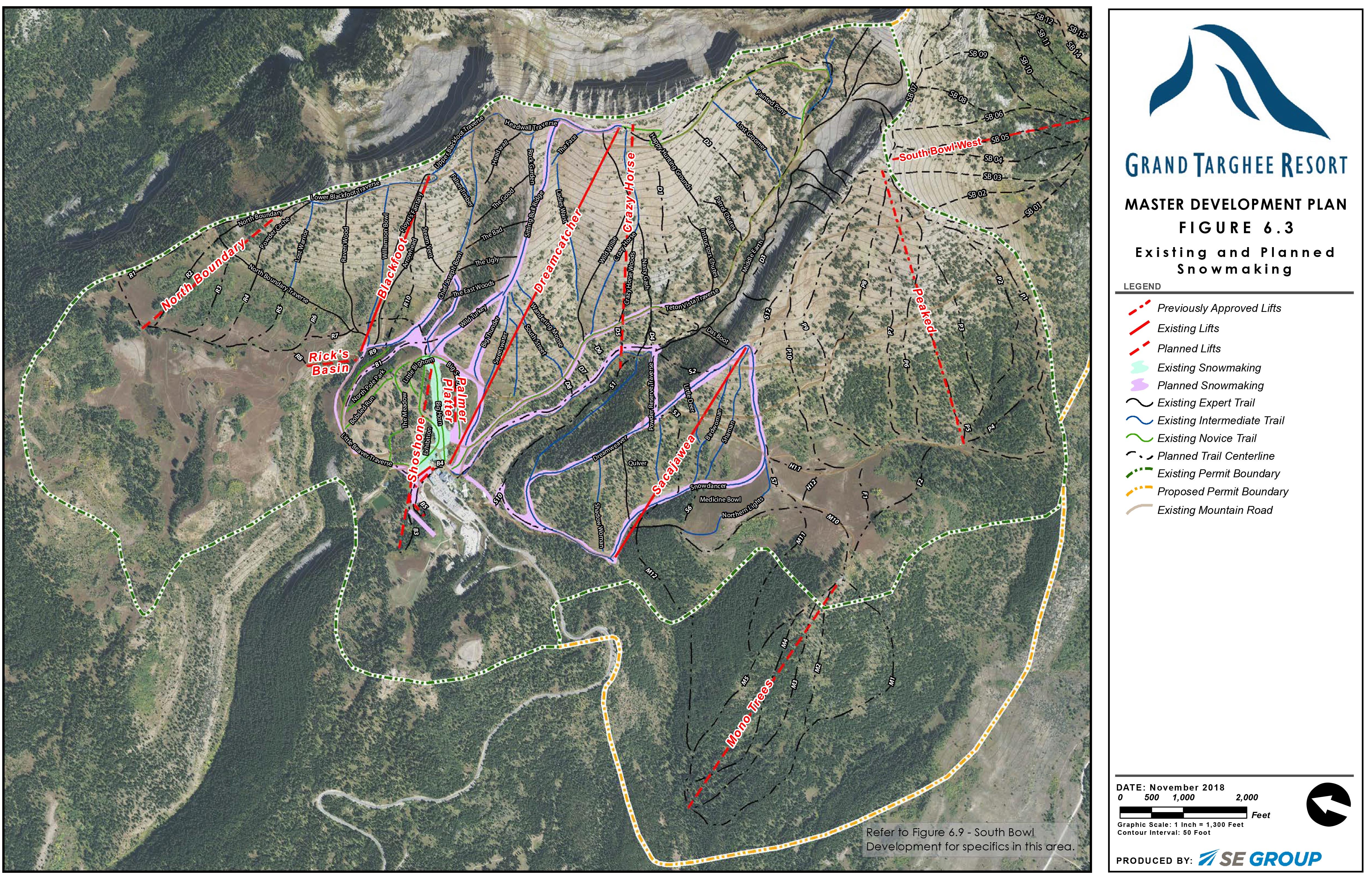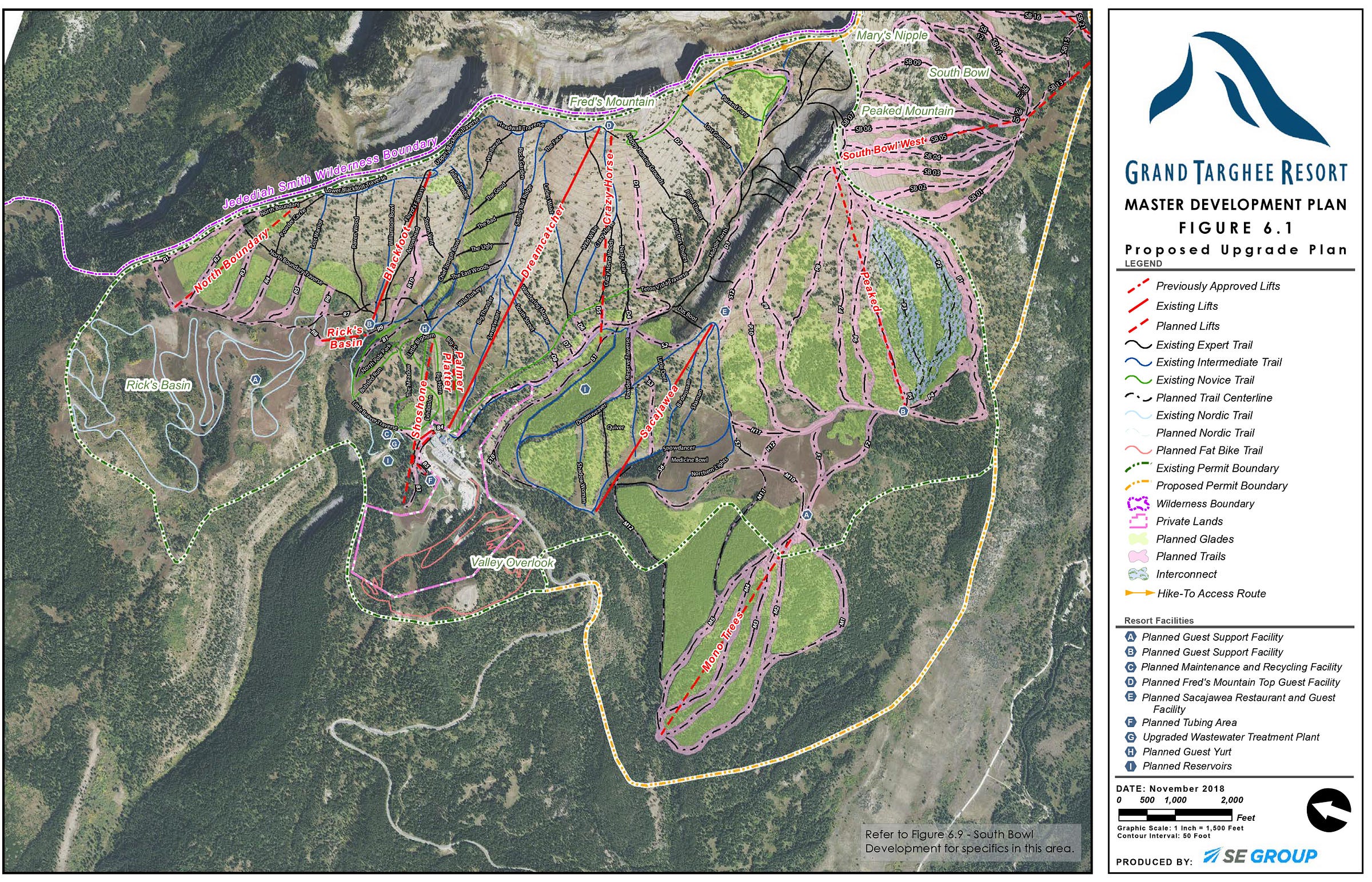 Here’s the overview of Targhee’s Forest Service master development plan. You can see potential expansions below Blackfoot (left in the image below), looker’s right of Peaked/Colter (upper right), and below Sacajawea (lower right):