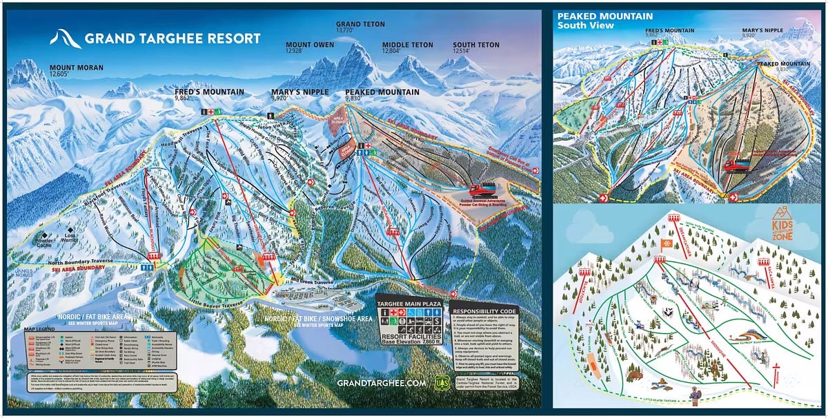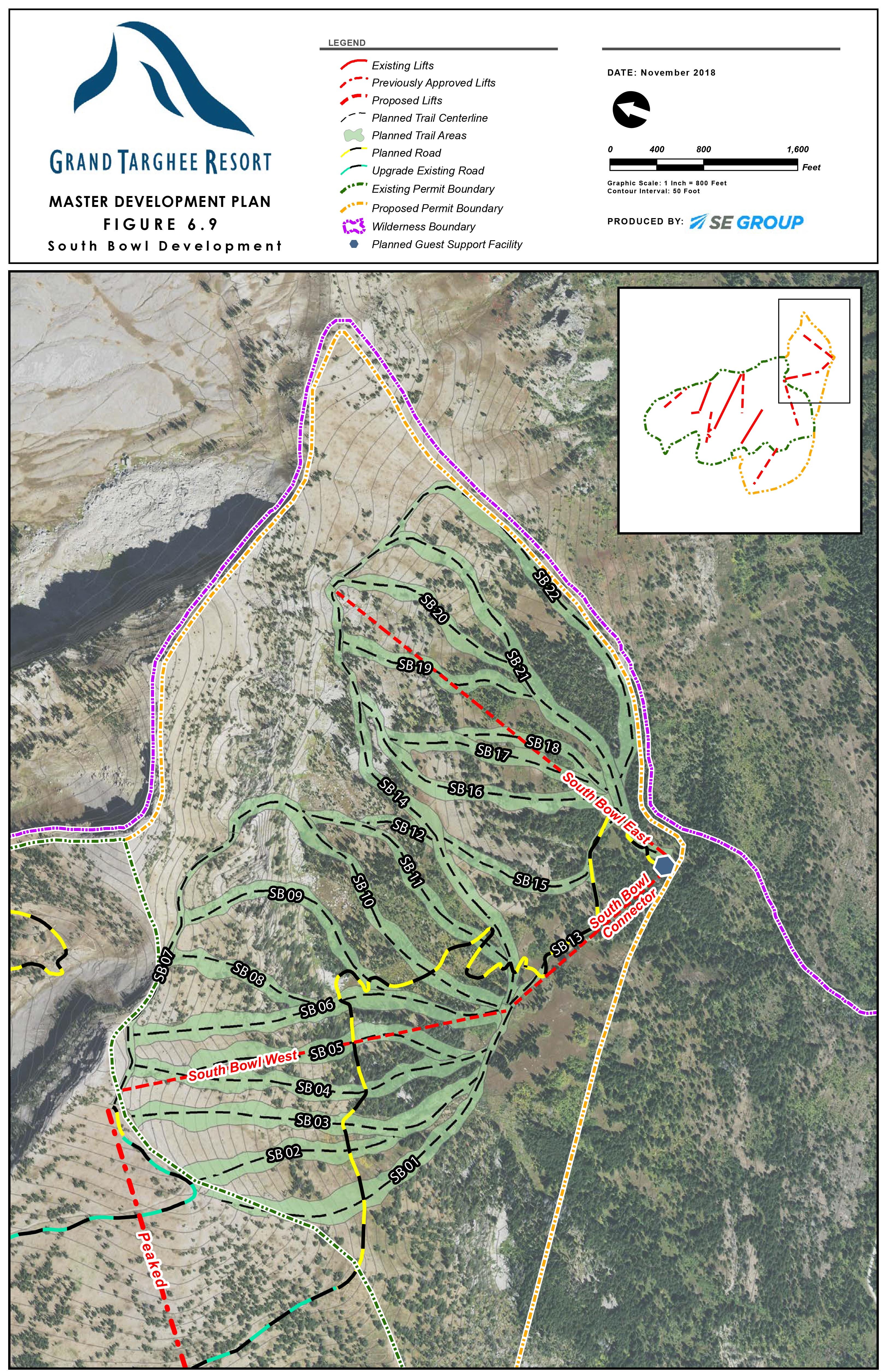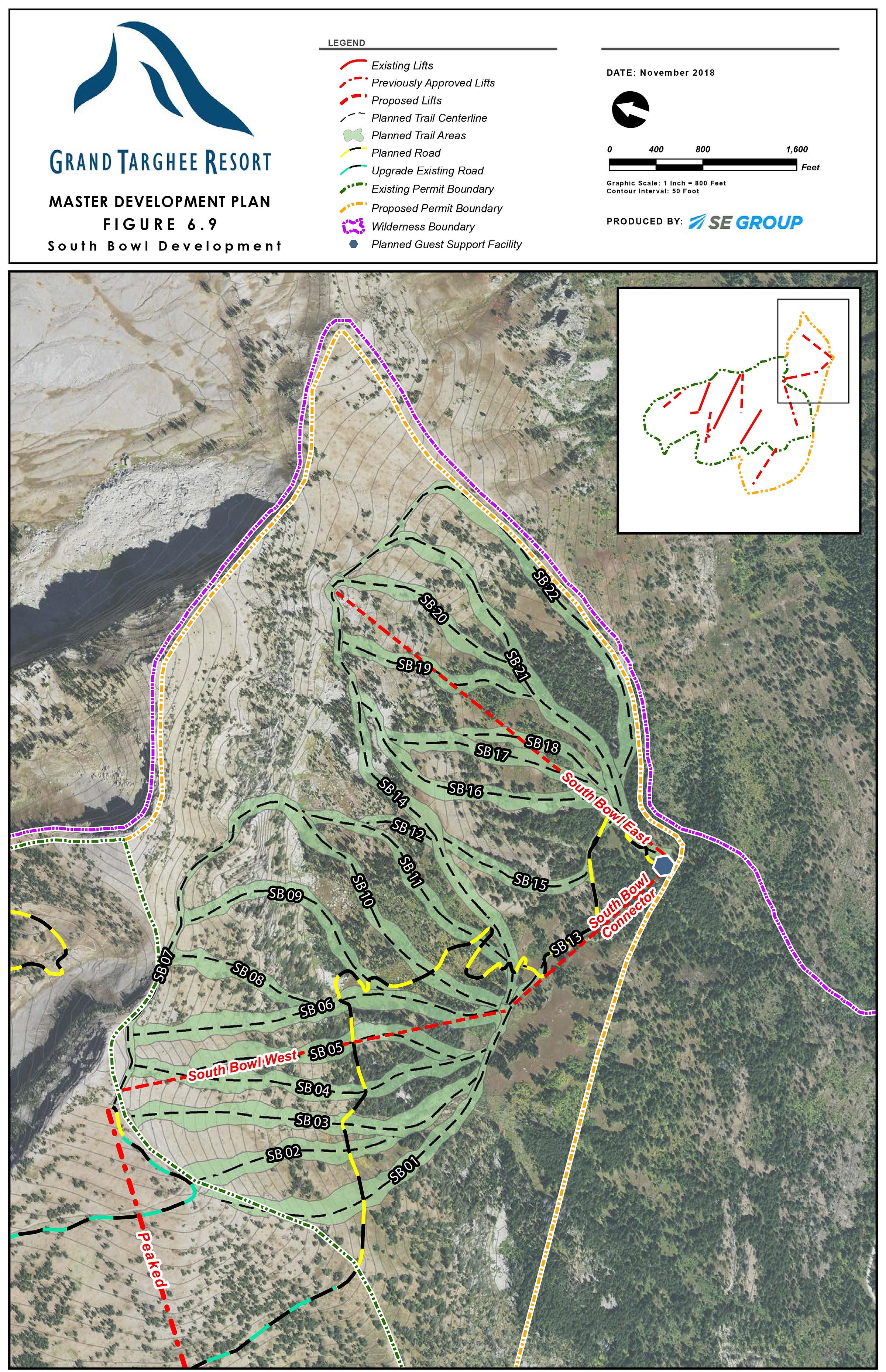 Here’s the overview of Targhee’s Forest Service master development plan. You can see potential expansions below Blackfoot (left in the image below), looker’s right of Peaked/Colter (upper right), and below Sacajawea (lower right):