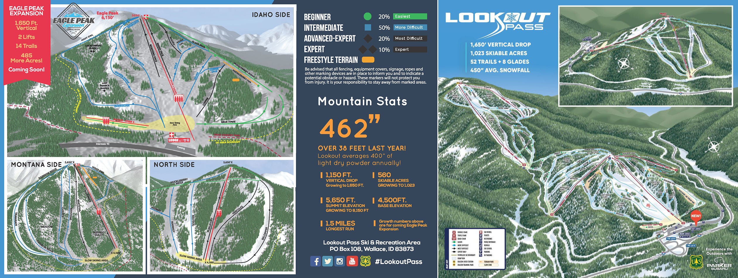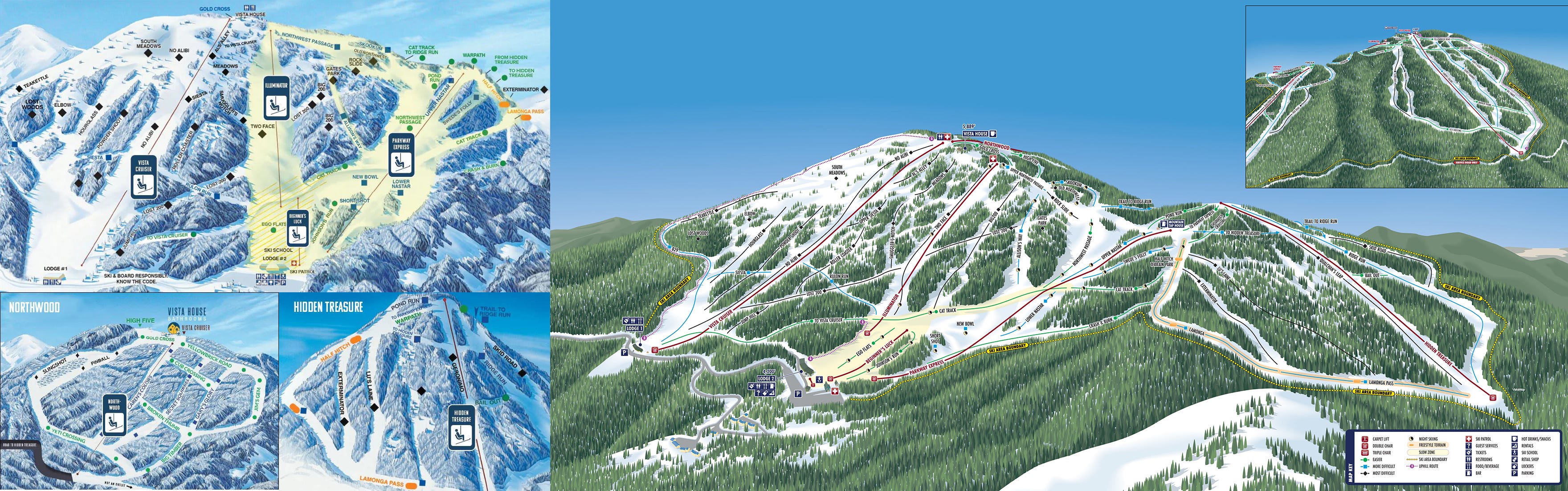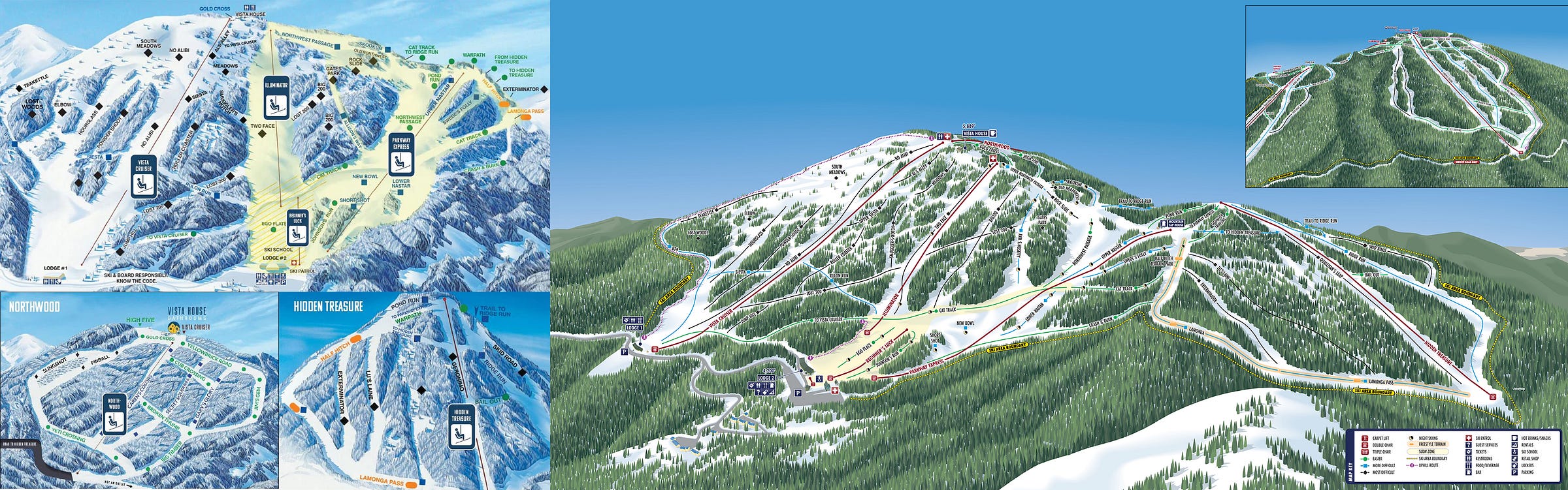This is a fixable problem, as I outlined in my last podcast, with Vista Map founder Gary Milliken, who untangled similarly confusing trailmaps for Mt. Spokane, Washington and Lookout Pass, Idaho over the past couple of years. Here’s Lookout Pass’ old and new maps side-by-side: