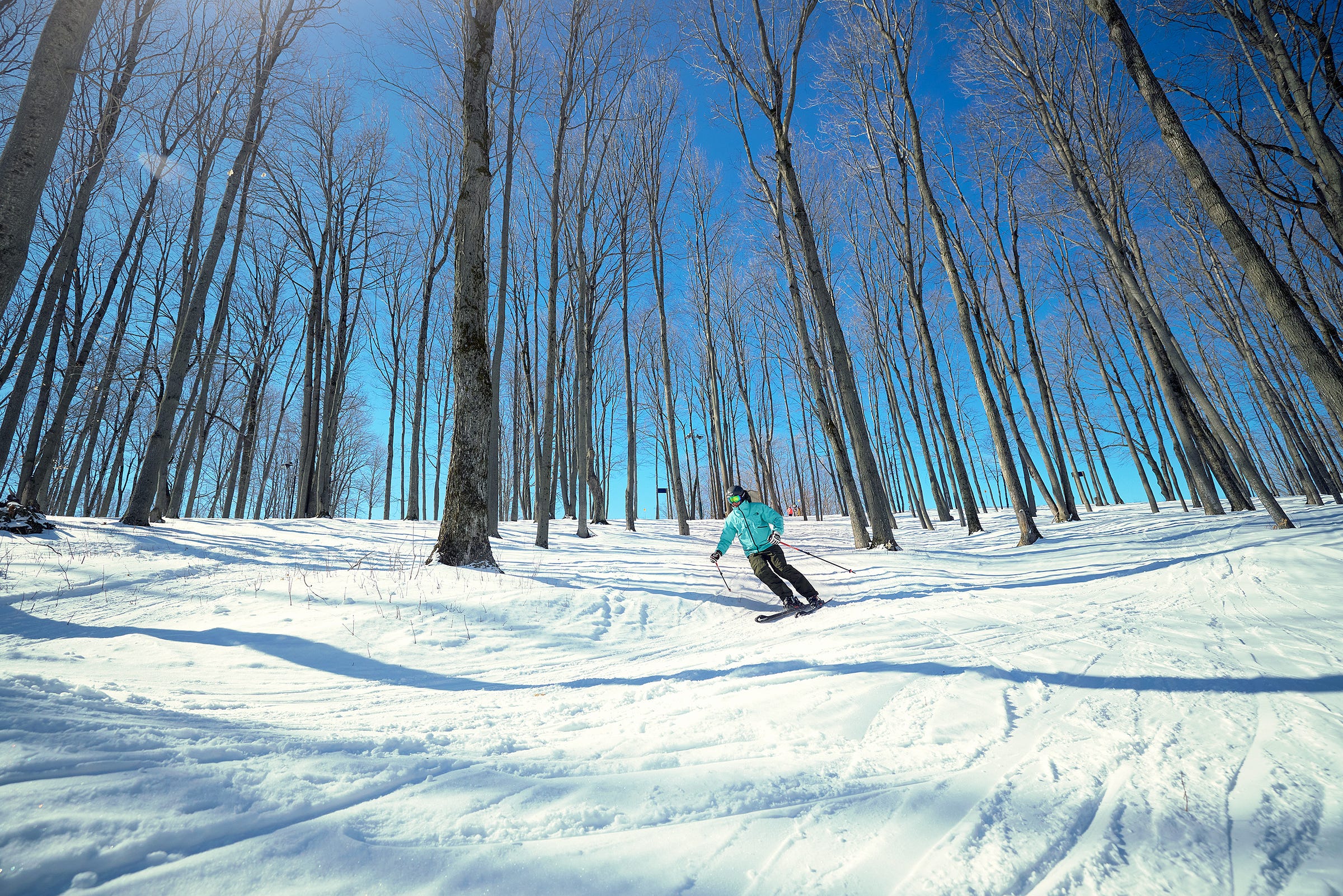 Skiing the trees at Crystal. Photo courtesy of Crystal Mountain, Michigan.