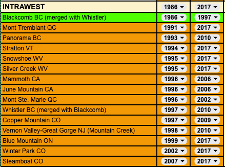 One of the reasons I did this insane timeline project was so that I would no longer have to sink 30 minutes into Google every time someone said the word “Intrawest.” The timeline was a pain in the ass, but worth it, because now whenever I think “wait exactly what did Intrawest own and when?” I can just say “oh yeah I already did that here you go”: