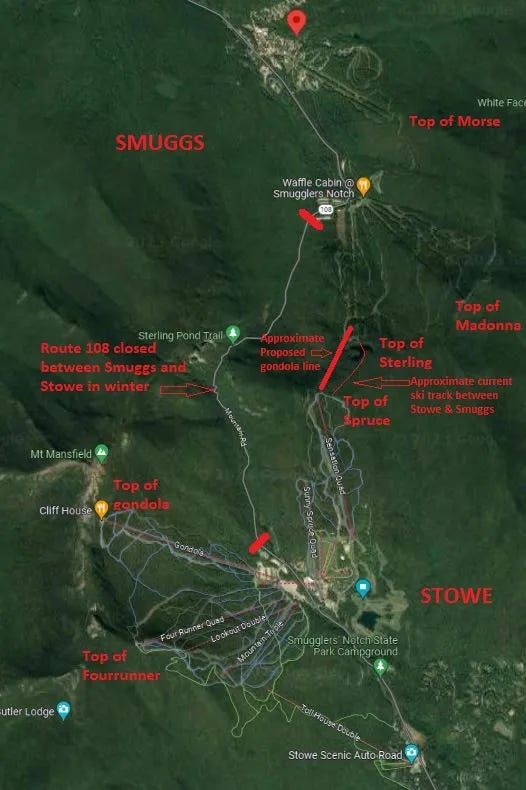 On Stowe-Smuggs proximity and the proposed gondola and a long drive in winter