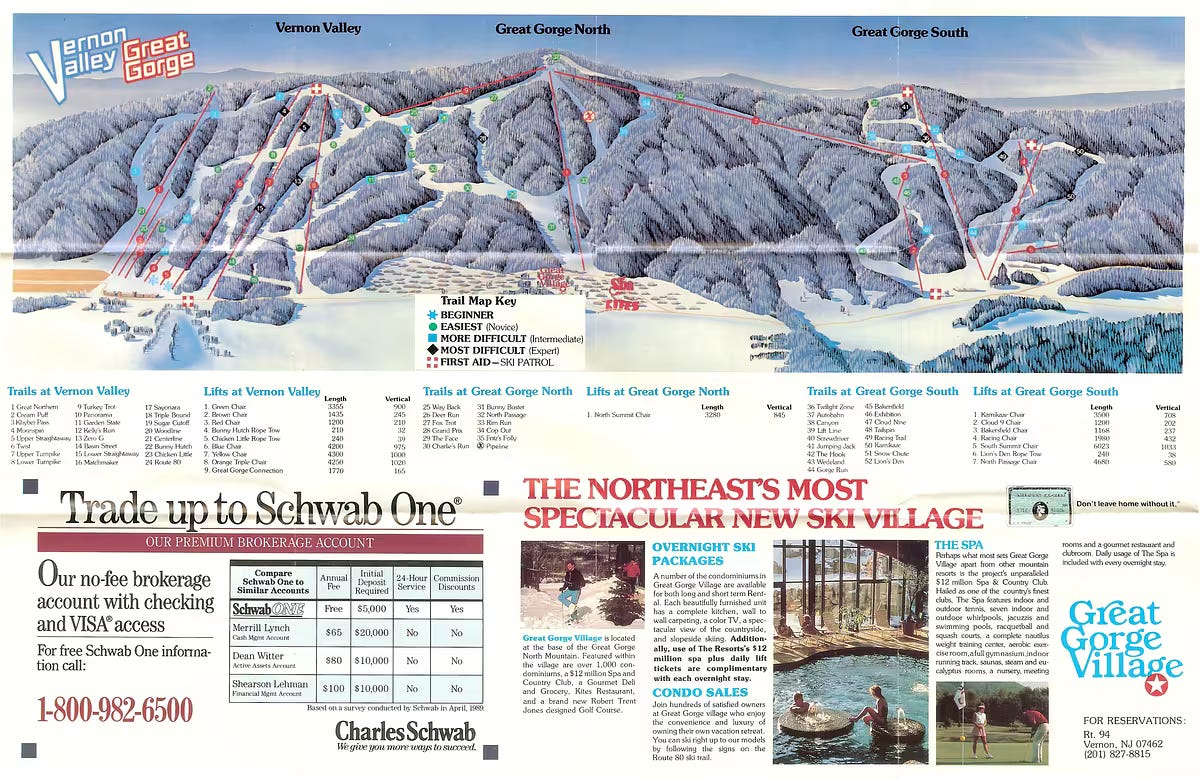 The ski area now known as Mountain Creek was Vernon Valley-Great Gorge until 1997. Anyone who grew up in the area still calls the joint by its legacy name.