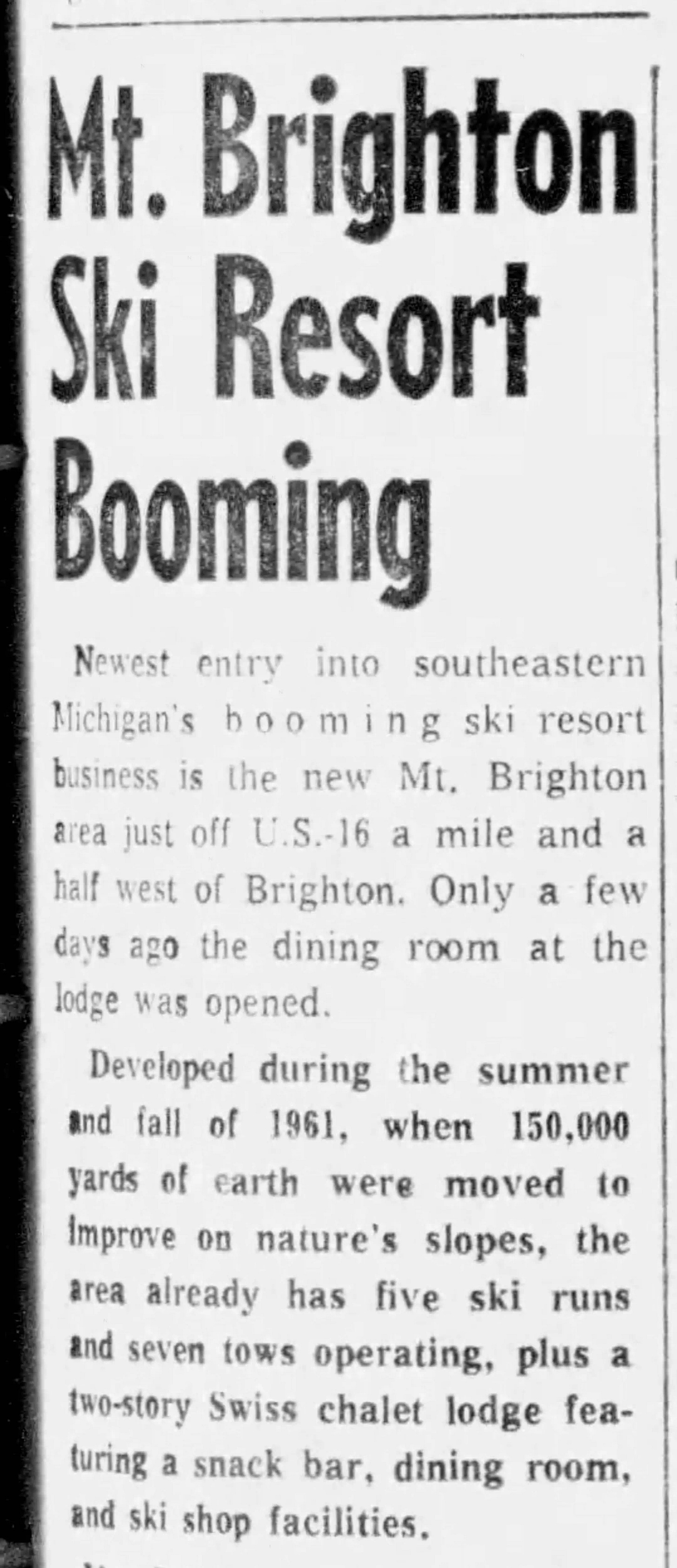 I’d read somewhere, sometime, that Mount Brighton had been built on dirt moved to make way for Interstate 96, which bores across the state about a half mile north of the ski area. The timelines match, as this section of I-96 was built between 1956 and ’57, just before Brighton opened in 1960. This circa 1962 article from The Livingston Post, a local paper, fails to mention the source of the dirt, leaving me uncertain as to whether or not the hill is related to the highway: