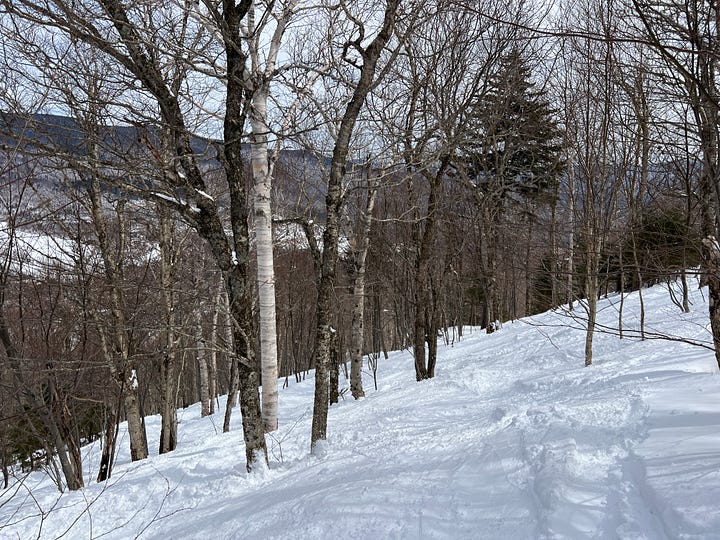 Credit to Stowe for keeping these wild trails intact for going on a century, but what I said about them “not being for the masses” on the podcast wasn’t quite accurate, as the lower portions of many - especially Liftline - are wide, often groomed, and not particularly treacherous. The best end-to-end trail is Goat, which is insanely steep and narrow up top. Here’s part of Goat’s middle-to-lower section, which is mellower but a good portrayal of New England bumpy, exposed-dirt-and-rocks gnar, especially at the :19 mark: