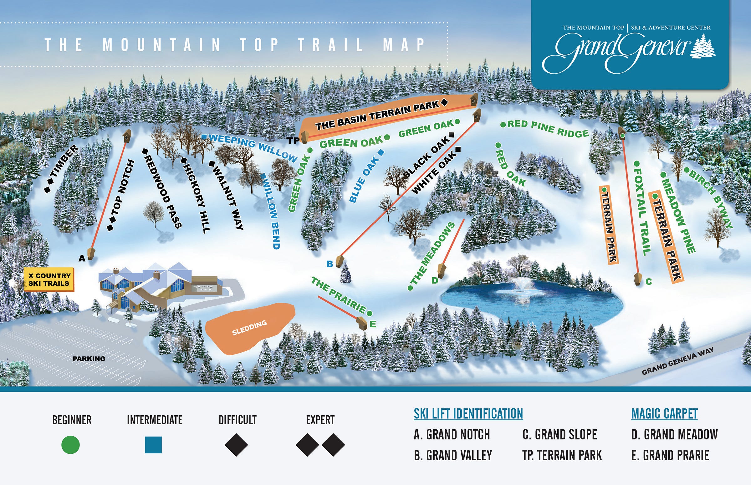 The Mountain Top offers ski and snow accommodations, such as trolley transportation available from guest rooms at Grand Geneva and Timber Ridge Lodge, three chairlifts, two carpet lifts, a six-acre terrain park, excellent group rates, food and drinks at Leinenkugel’s Mountain Top Lodge and even night skiing. We have more than just skiing! Enjoy Lake Geneva sledding, snowshoeing and cross-country skiing too. Truly something for everyone at The Mountain Top ski resort in Lake Geneva.