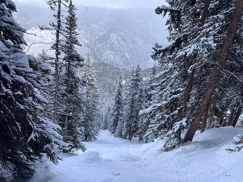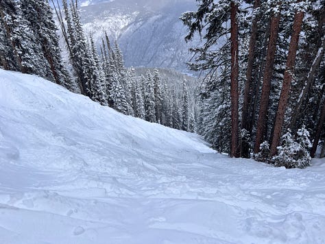 November 14, 2025 - which was well before I traveled to Snowmass and chased Cross around a bit in the pow. There she is tiny in the distance: