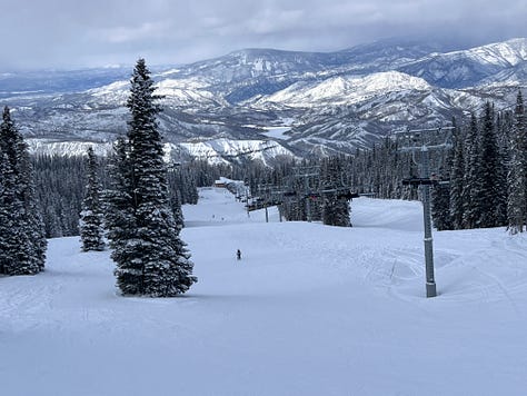 And here’s what that extra two hours of driving gets you: all the benefits of Colorado skiing absent most of its drawbacks. Goldilocks Mountain. Here you’ll find the fourth-highest lift-served summit in American skiing, the second-tallest vertical drop, and a dizzying, dazzling modern lift fleet spinning 20 lifts, including 9 detachables and a gondola. You’ll find glorious ever-cruisers, tree-dotted and infinite; long bumpers twisting off High Alpine; comically approachable green zones at the village and mid-mountain. If Campground double is open, you can sample Colorado skiing circa 1975, alone in the big empty lapping the long, slow lift. And since the Brobots hate Snowmass, the high-altitude Hanging Valley and Cirque Headwall expert zones are always empty.