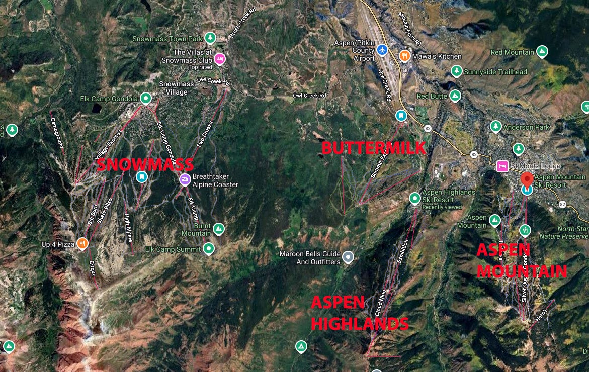 Aspen Skiing Company (Skico) is part of something called Aspen One. Don’t ask me what that is because even though they rolled it out two years ago I still have no idea what they’re talking about. All I know or care about is that they own four ski areas and here is what I know about them: