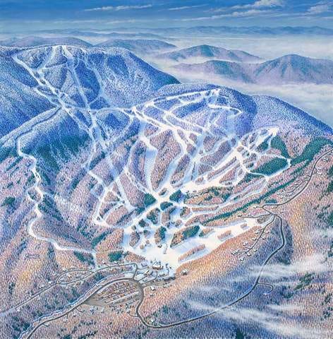 How good does Mad River Glen look through the eyes of ski map-making legend James Niehues? If you zoom in, you can probably see the frozen waterfall.