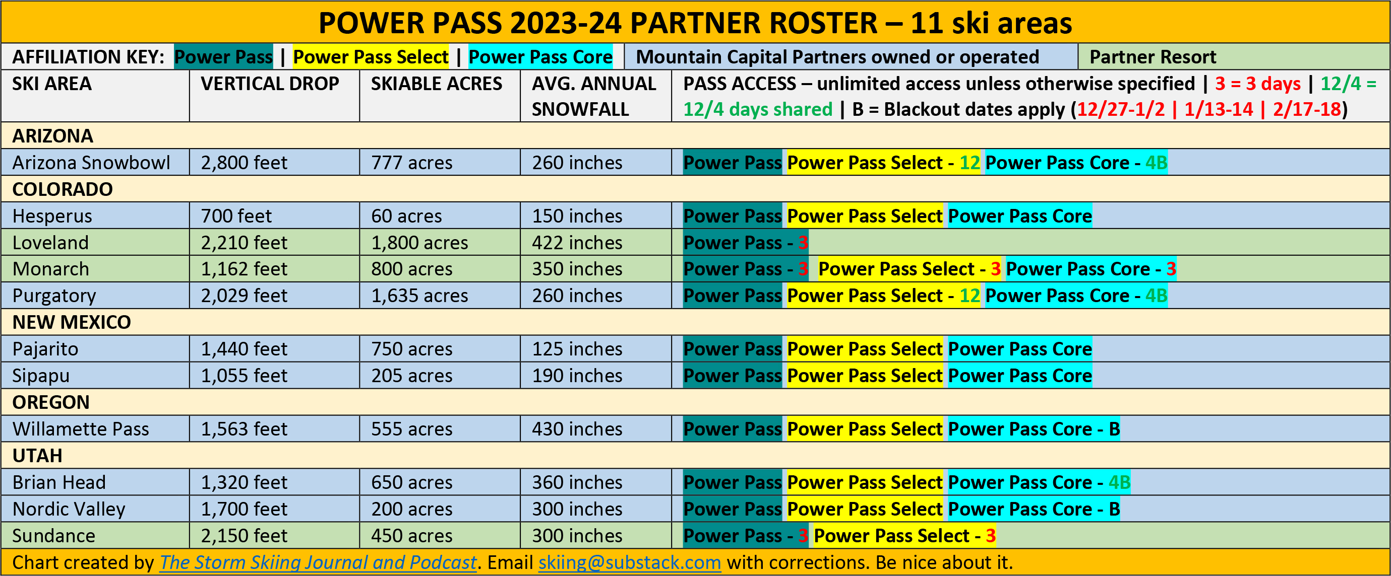 If your first question is “what the hell is the Power Pass,” then here is your answer: it is a multi-mountain pass serving eight of Mountain Capital Partners’ (MCP) ski areas, plus a few partner resorts. Here’s the 2023-24 lineup - so far: