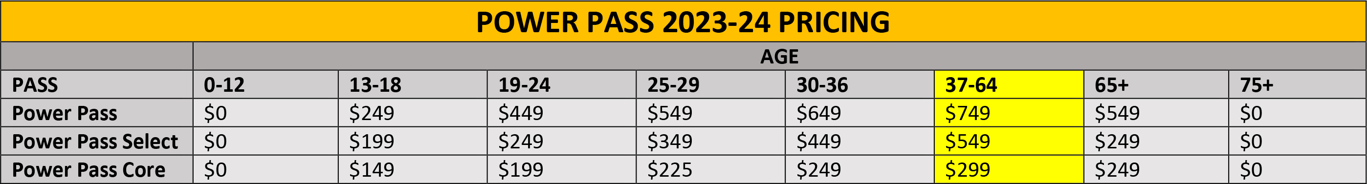 And if you want to know how that compares to last year’s early-bird Power Pass prices, I made a chart for that too (well, for the adult ages 37-to-64 tier at least):