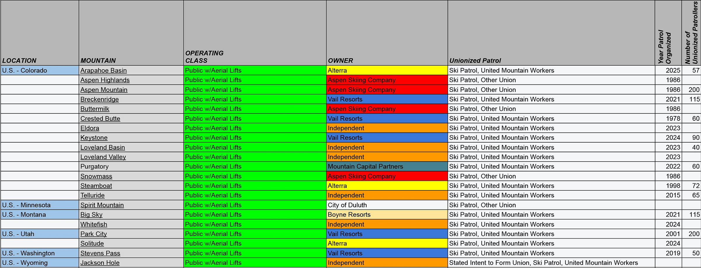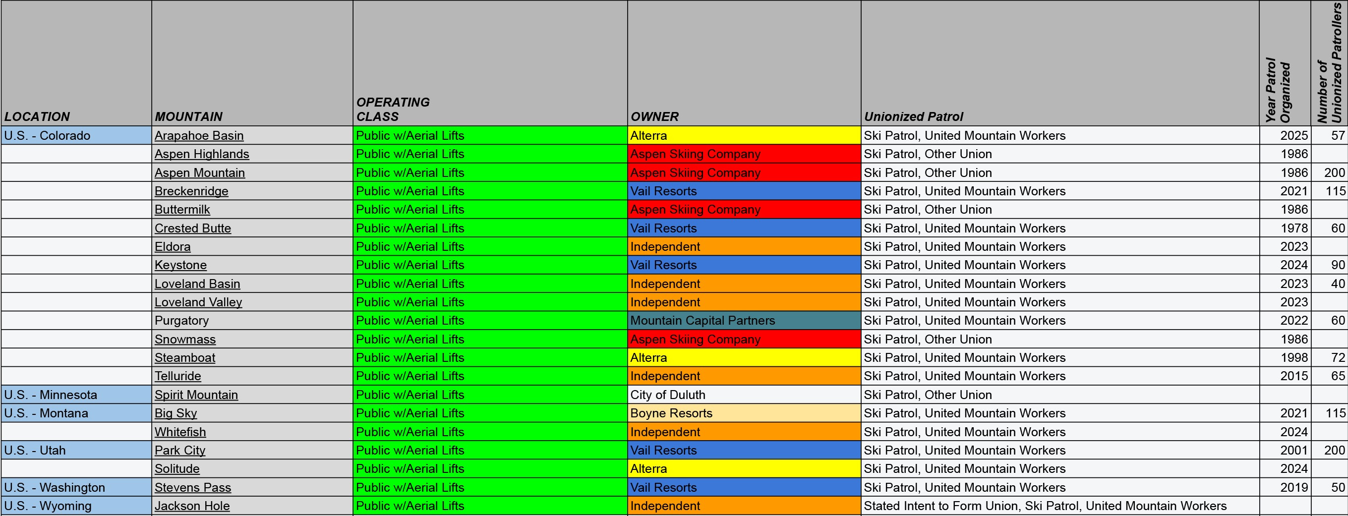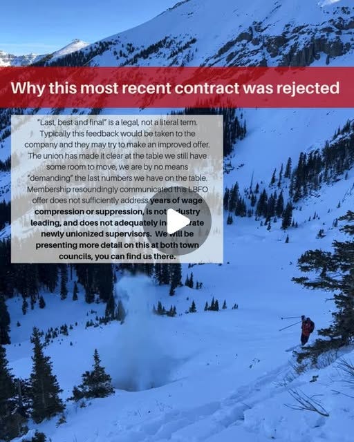 When I hosted UMW President and Park City patroller Max Magill on the podcast earlier this year, I asked him if the eventual goal was one patrol union that could bargain as a block across resorts, as United Auto Workers does across, say, Ford plants, rather than via satellite divisions with 50 members here and 80 there. He acknowledged the benefits of such a system without committing to any particular direction.