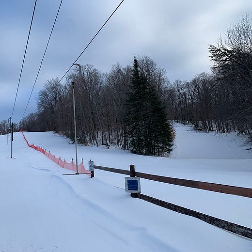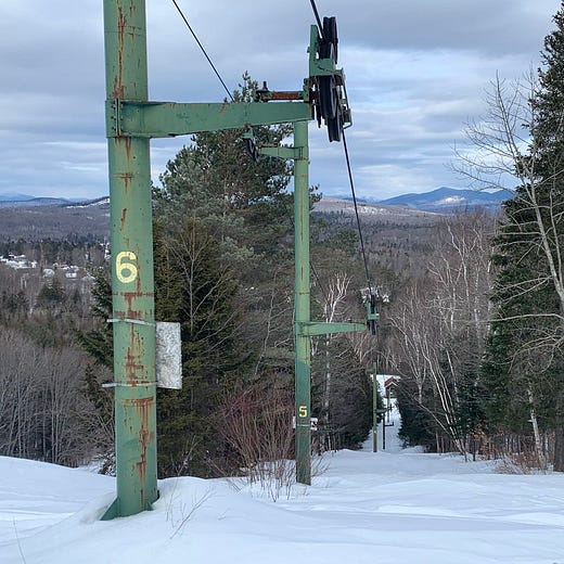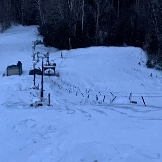 Where I went next was to a series of closed-for-the-evening town tows scattered across the southern Adirondacks, none of them more than probably 200 vertical feet. It’s a story I’ve already told on Twitter so here you go: