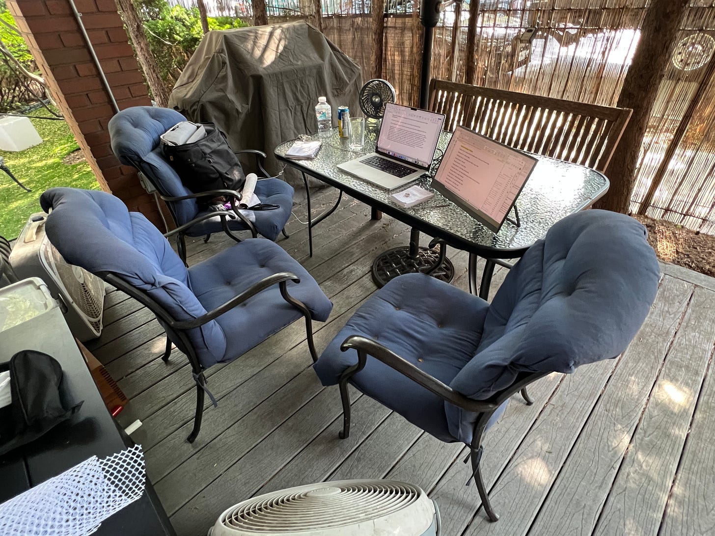 On working outdoors, routine, leashing the Pet Rectangle, being Bike Bro, migraines, a podcast update, and The Storm, The Book