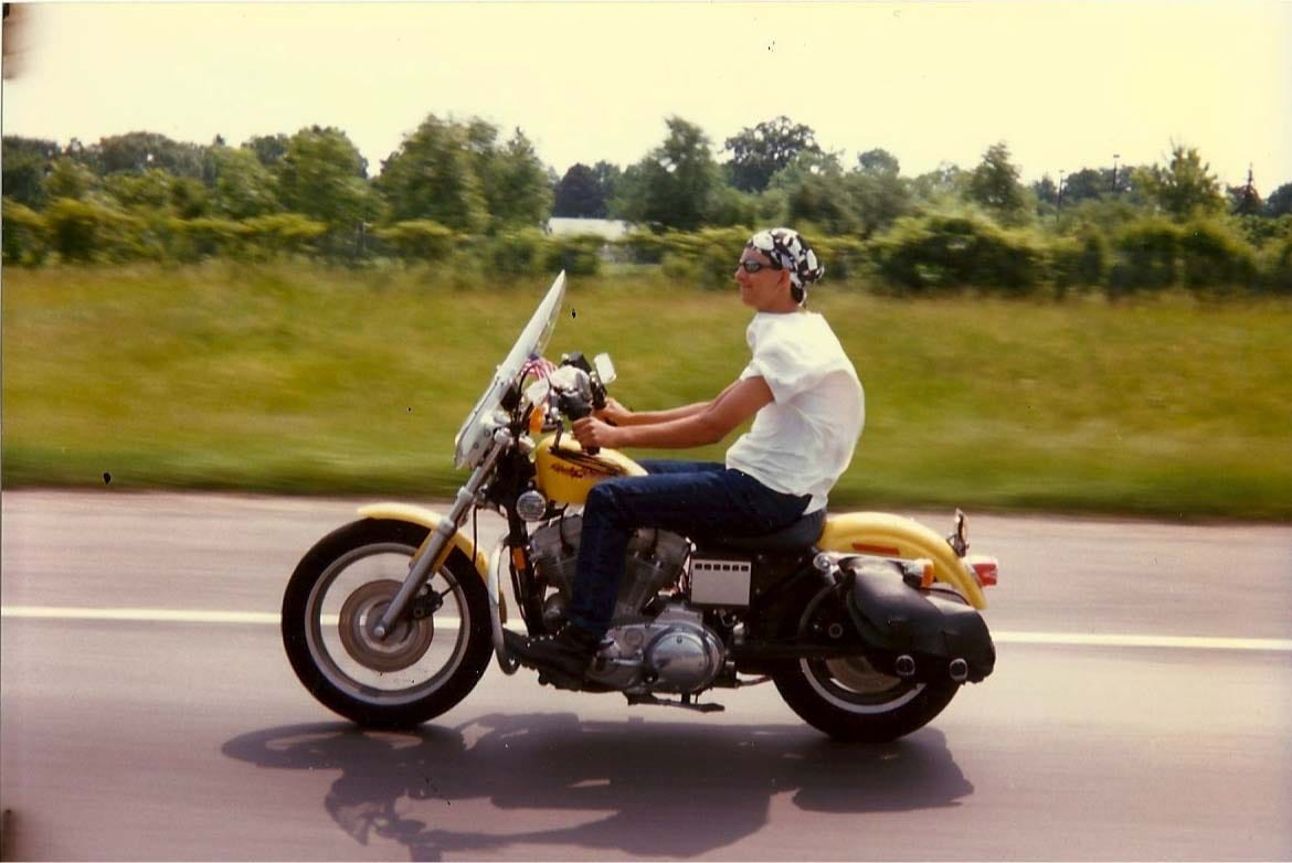 Back in the ‘90s, when I started skiing and when helmets were as common on the ski slopes as flip-flops, I took a series of long cross-country road trips on a Harley. I decided about 90 miles into these that wearing a helmet, frankly, sucked. They were itchy and hot and heavy and awkward. So I never wore one again when we crossed into a state that didn’t have a helmet law, which there are more of than you probably think. Was this stupid? I don’t know. I didn’t die, and I got this awesome picture out of the deal: